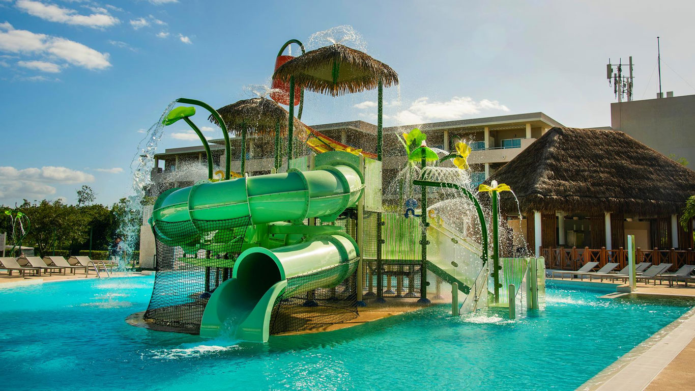 The little ones will have more fun than ever before in this amazing tropical-themed water park. Three incredible swimming pools, giant water buckets and five slides are available for family fun. A vacation full of fun and entertainment.
