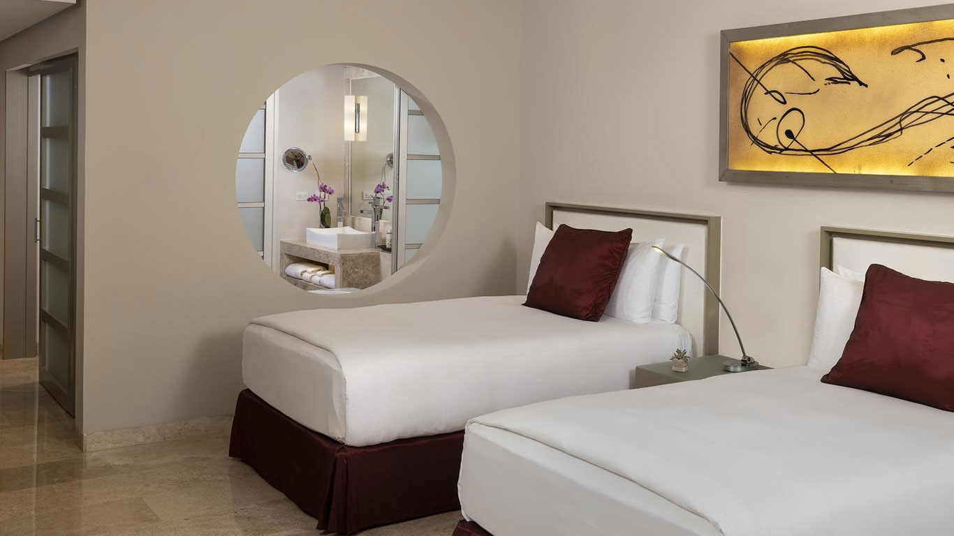The Junior Suite Nature View at Paradisus Playa del Carmen features a bedroom and a comfortable lounge area with a sofa. Tropical-style furniture, state-of-the-art technology and endless stunning features. In addition to a private terrace overlooking the beautiful gardens.