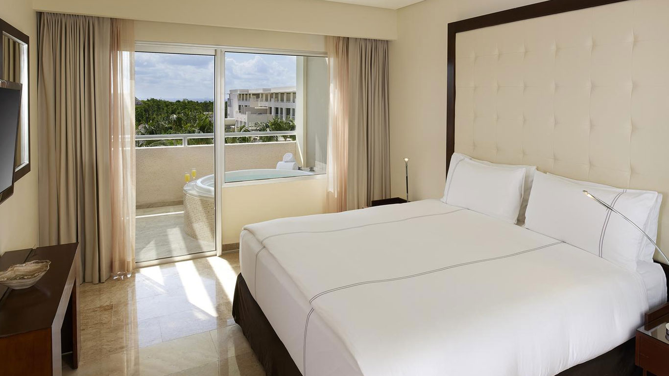 The Nature View Master Suite at Paradisus Playa del Carmen is a sophisticated suite with a bedroom, a lounge with sofa-bed, and a dining area. Spend the day catching some rays and recharging your batteries in your terrace hot tub on your terrace with incredible views.